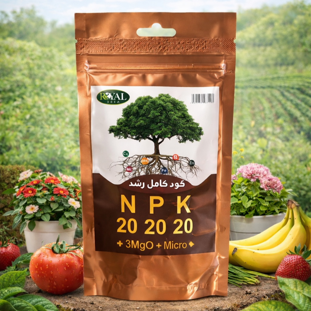 کود کامل رشد NPK 20-20-20 رویال | تقویت همهجانبه گیاهان + ریزمغذی پک۱۰ عددی | عمده